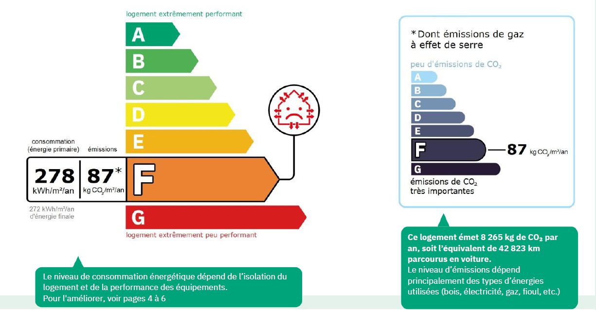 Classe énergétique du logement situé au premier étage : F (352) ; C (11)
